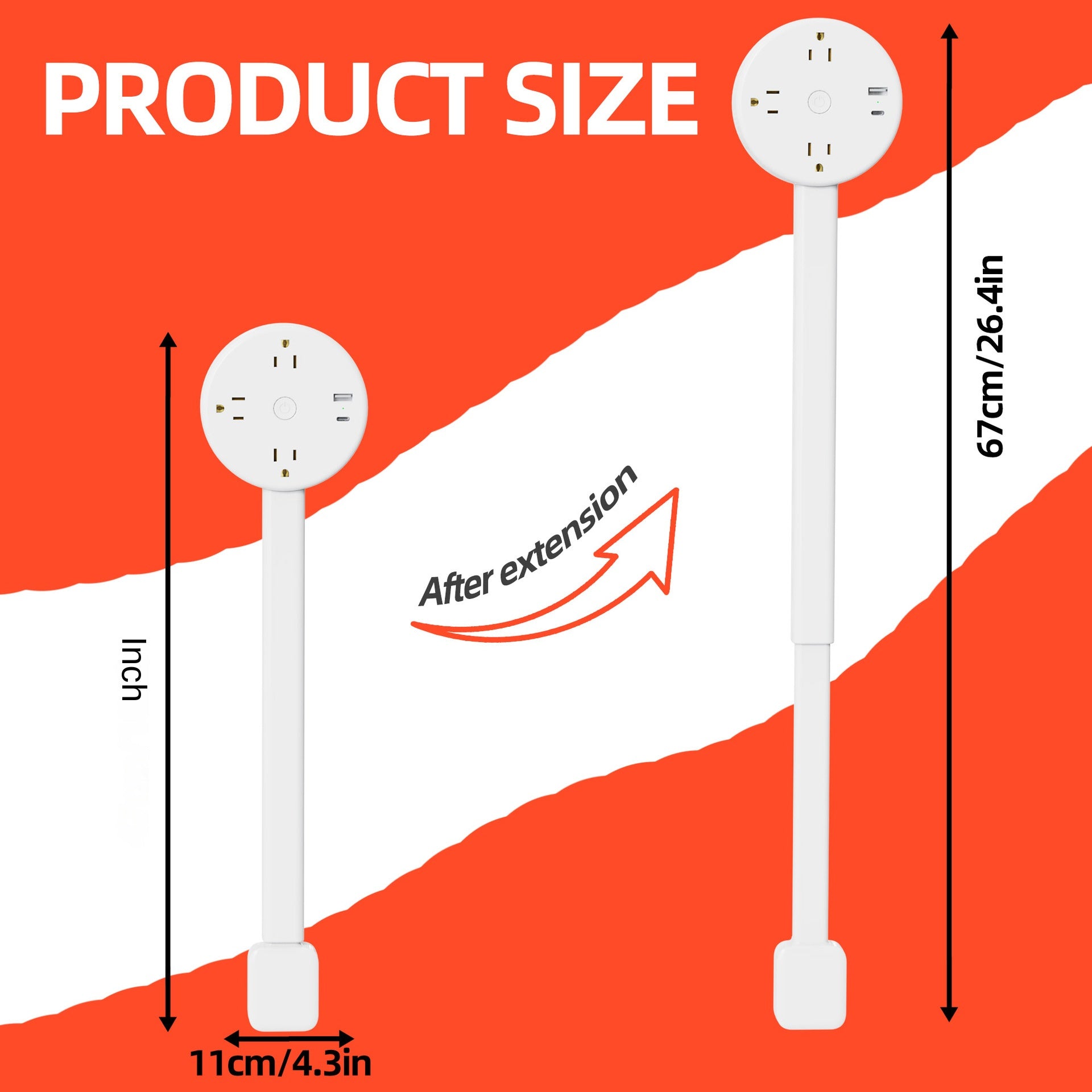 Color: Power Socket Extender, EU Plug Power Strip Extension, New Style Round Measuring Ruler