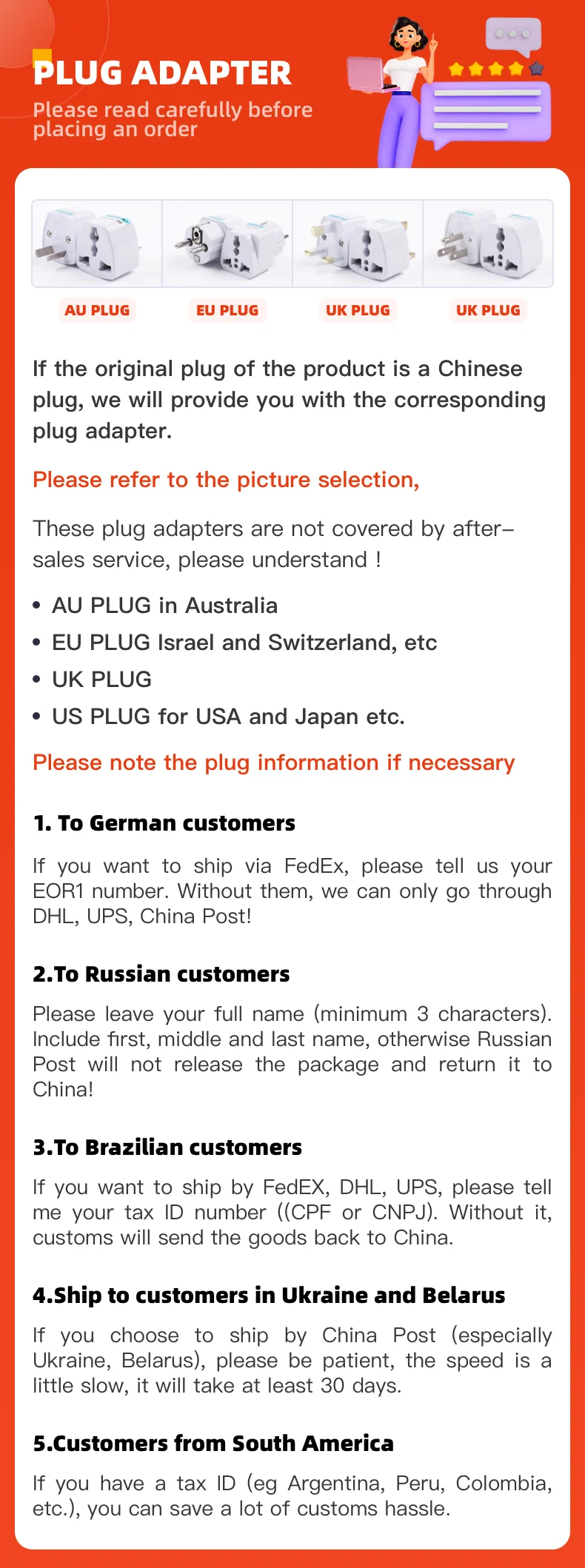 Before you leave neutral or negative feedback, please feel free to contact us. We will do our best to provide you with the best customer service.